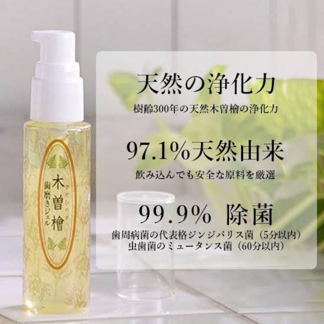 木曽檜歯磨きジェル(キソヒノキハミガキジェル) 聖なる森から生まれた歯磨きジェル 「磨く」から「浄める」へ 世界初 新時代の歯磨きジェル 内容量 50g(目安:1日2回使用でおよそ2〜3ヶ月分) ボトルサイズ:約13.3cm × 3.1cm(キャップ付きの状態) 【成分】 基剤: ヒノキ水/湿潤剤:ソルビトール、グリセリン/甘味剤:キシリトール/保湿剤:乳酸桿菌/ワサビ根発酵エキス、乳酸桿菌発酵液/可溶化剤:PFG-60水添ヒマシ油/粘結剤:キサンタンガム、カルボマー/pH調整剤:水酸化K/保湿剤:グリチルリチン酸2K、イチョウ葉エキス、スイカズラ花エキス、セージ葉エキス、ヒアルロン酸Na、クチナシエキス/香味剤:ハッカ油/溶剤:エタノール 【ご使用方法】 1〜3プッシュを歯ブラシにつけ、歯と口腔内を優しくブラッシング。終了後は水などですすいでください。 【効能】 虫歯を防ぐ / 歯を白くする / 歯垢を除去する / 口中を浄化する / 口臭を防ぐ / 歯のヤニを取る / 歯石の沈着を防ぐ ------------------------------------- 虫歯菌、歯周病菌を抑える木曽檜蒸留水を使った歯磨きジェル!虫歯を防ぐ / 歯を白くする / 歯垢を除去する / 口中を浄化する / 口臭を防ぐ / 歯のヤニを取る / 歯石の沈着を防ぐ 木曽檜三百年 木曽檜 歯磨きジェル 単品 50g デンタルジェル 木曽檜ジェル 国有林 ジェル 歯磨きジェル ハミガキジェル 子供 天然 除菌 抗菌 歯周病 妊婦 専用 世界初 安心 日本製 はみがき粉 はみがき 予防ケア 木曽ヒノキ 妊婦 口臭 対策 プラスケア 株式会社プラスケア きそひのき 木曽ひのき ひのき 当店は株式会社プラスケアのパートナーサロンであり製品は正規品となります。